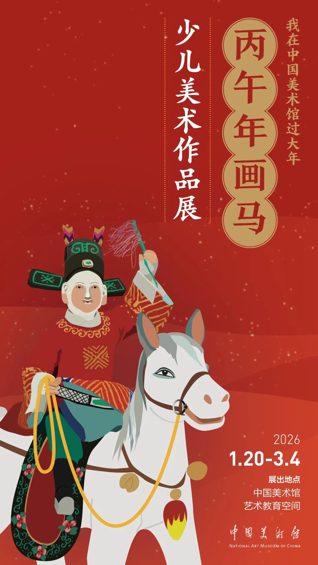 中國美術(shù)館“我在中國美術(shù)館過大年”品牌公共教育活動——“生肖年畫生肖”已連續(xù)舉辦四年,相繼策劃壬寅年畫虎、癸卯年畫兔、甲辰年畫龍、乙巳年畫蛇活動。中國美術(shù)館將于2026年1月推出“丙午年畫馬”少兒美術(shù)作品展,在校學生可依托中國美術(shù)館藏作品,發(fā)揮想象創(chuàng)作作品。現(xiàn)征集“丙午年畫馬”少兒美術(shù)作品,材料、形式不限。作品經(jīng)過專家遴選后,將于中國美術(shù)館藝術(shù)教育空間展出。