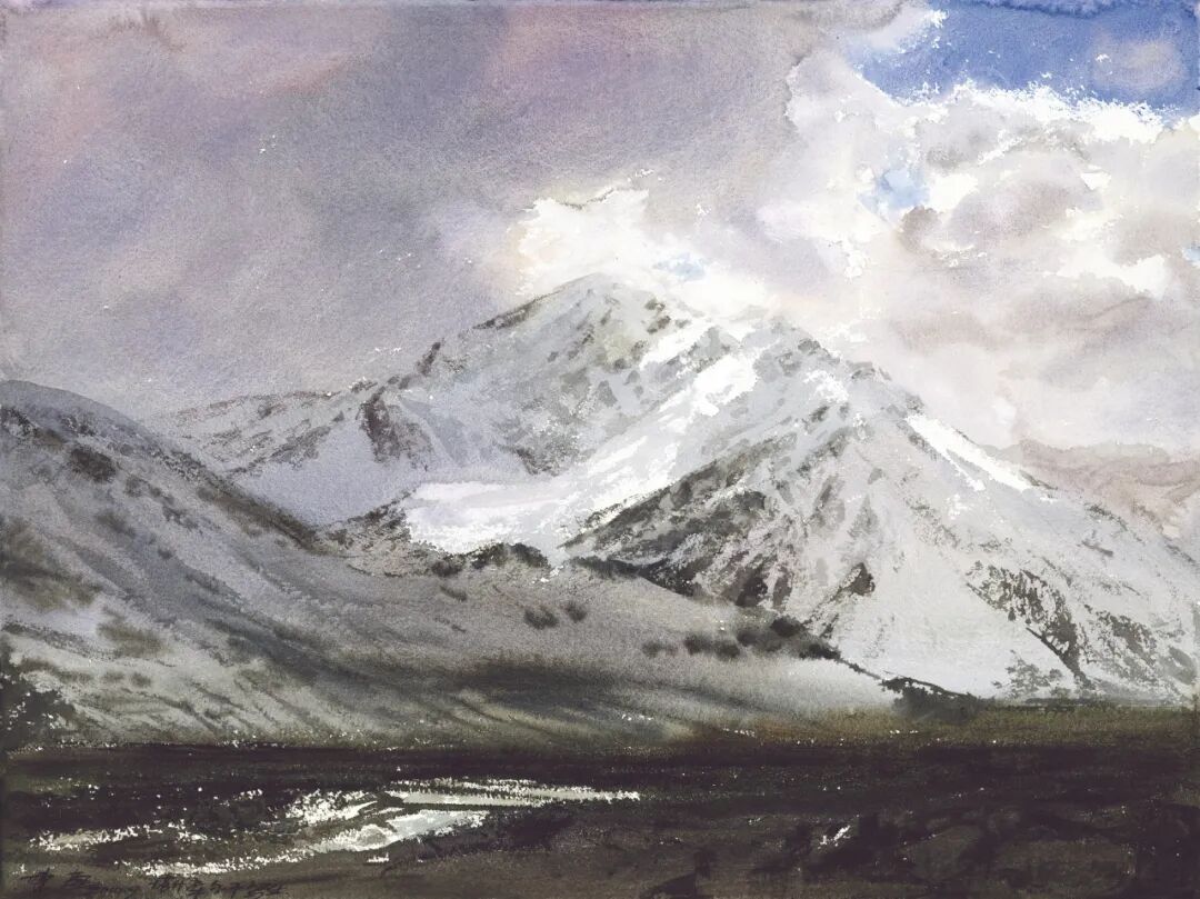 陳堅現(xiàn)為中國美術(shù)學(xué)院教授、博士生導(dǎo)師,中國美術(shù)家協(xié)會水彩畫藝術(shù)委員會名譽主任、中國美術(shù)館專家評審委員會委員。數(shù)十年來,他始終以堅守與創(chuàng)新為藝術(shù)坐標(biāo),2000年起便深入平均海拔4000米以上的帕米爾高原,每年駐留一兩個月,以堅韌地扎根塔吉克民族生活,從外部觀察者轉(zhuǎn)變?yōu)樵诘赜H歷者;在藝術(shù)語言上,他打破水彩輕透小巧的傳統(tǒng)認(rèn)知,融合中國畫寫意精神與西方造型體系,以“水”為元初混沌、以“色”為情感載體,通過干濕結(jié)合的技法讓畫面兼具潤澤通透與厚重力量,構(gòu)建出獨樹一幟的“水色語言”。