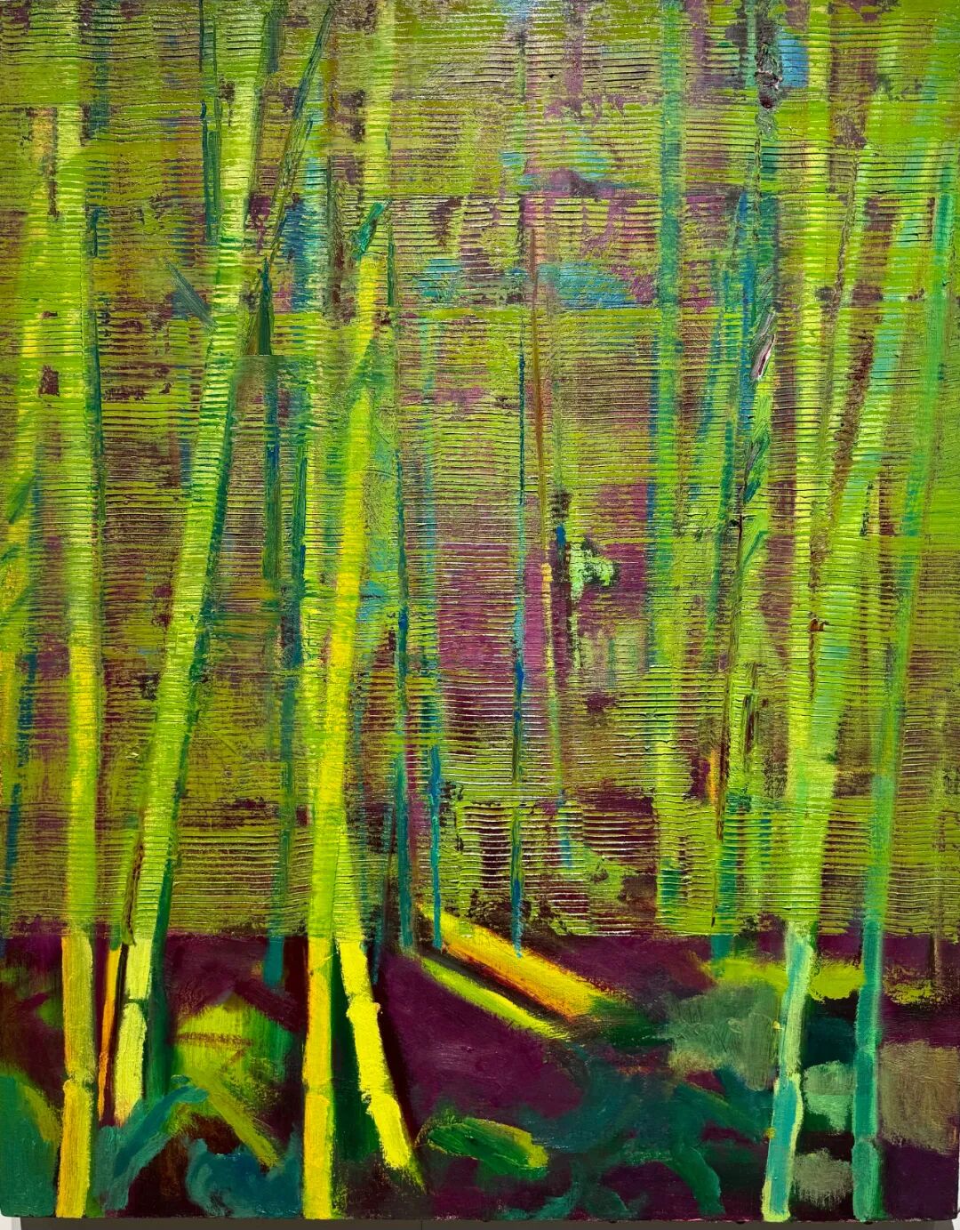 展覽聚焦“竹”與“園”這兩個(gè)深植于中華文脈的經(jīng)典意象進(jìn)行當(dāng)代轉(zhuǎn)化,匯集36位藝術(shù)家的42件作品,涵蓋油畫(huà)、水墨、雕塑、裝置、影像等多種藝術(shù)媒介。展覽的三個(gè)單元——“共生造境”“竹格新解”“園語(yǔ)重構(gòu)”,構(gòu)成一個(gè)多層次的視覺(jué)敘事。“共生造境”著眼于竹與園的交融共生,藝術(shù)家們創(chuàng)造出竹石相依、窗廊掩映的意境現(xiàn)場(chǎng),使竹成為與空間、光影交織的活性媒介,讓園林演變?yōu)橐粋€(gè)可生長(zhǎng)、呼吸的有機(jī)體。“竹格新解”聚焦于竹文化的當(dāng)代轉(zhuǎn)譯,藝術(shù)家們深入其“清新、有節(jié)、韌直”的精神內(nèi)核,通過(guò)解構(gòu)與再造,不僅延續(xù)了其作為古典象征的傳統(tǒng)品格,更賦予它屬于21世紀(jì)的視覺(jué)語(yǔ)義。“園語(yǔ)重構(gòu)”致力于語(yǔ)境轉(zhuǎn)換,藝術(shù)家們以多元媒介重新詮釋園景、亭臺(tái)、池魚(yú)和石意等園林元素,將移步換景和游觀之趣轉(zhuǎn)化為視覺(jué)與空間的敘事實(shí)驗(yàn),激活深藏于東方美學(xué)中的宇宙觀和生命感。