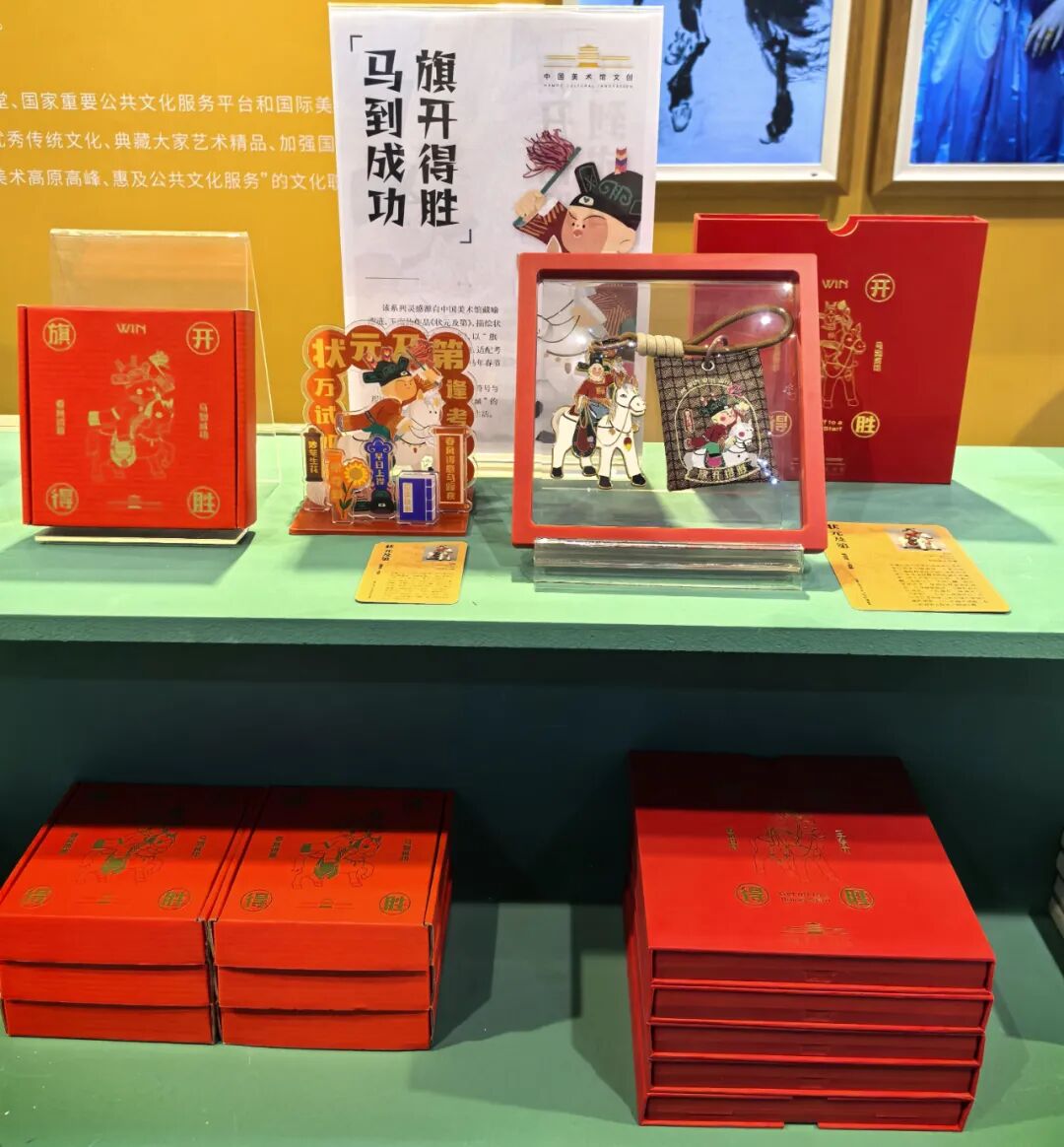 展區(qū)內(nèi),中國美術(shù)館的展位前人頭攢動,其推出的“狀元及第”系列與“徐悲鴻奔馬”系列文創(chuàng)產(chǎn)品一經(jīng)亮相,便吸引了大批游客駐足,成為市集上備受矚目的焦點。其中,“旗開得勝 馬到成功”系列文創(chuàng)尤為搶眼,該系列以國家級非物質(zhì)文化遺產(chǎn)代表性項目傳承人喻湘漣、王南仙制作的《狀元及第》為靈感,生動再現(xiàn)了科舉狀元騎馬游街的場景,既承載了金榜題名的傳統(tǒng)吉祥寓意,又以“旗開得勝”與“馬到成功”的主題定位,成為人生關(guān)鍵節(jié)點傳遞美好祝福的優(yōu)質(zhì)載體,同時契合了即將到來的馬年春節(jié)所蘊含的“新年新氣象、開局必成功”的美好期盼。