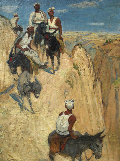 《信天游》是武永年最著名的油畫(huà)代表作,在20世紀(jì)中國(guó)油畫(huà)史上具有重要影響力。作品描繪了一群陜北農(nóng)民騎著毛驢在藍(lán)天白云之下的山梁上吟唱。作品畫(huà)風(fēng)晴朗,色調(diào)明快,用筆簡(jiǎn)潔,于“筆不周而意周”之中傳達(dá)出行走于藍(lán)天厚土之間的陜北農(nóng)民的蓬勃朝氣。正如藝術(shù)家自己所說(shuō),“這些創(chuàng)作是在生活中摘取對(duì)自己有精神觸動(dòng),又有感人的視覺(jué)形象的胚胎,最終抒發(fā)自己對(duì)普通人生命的愛(ài)和關(guān)切。”鐘涵先生認(rèn)為“可以把這幅畫(huà)看作武永年藝術(shù)風(fēng)格形成的標(biāo)志。”在平凡生活中截取撼動(dòng)人心的一刻,留下浩蕩時(shí)空中的真摯情感,武永年將他對(duì)西北大地真誠(chéng)的愛(ài)傾注筆下,描繪出如此一幅蕩氣回腸的“信天游”。